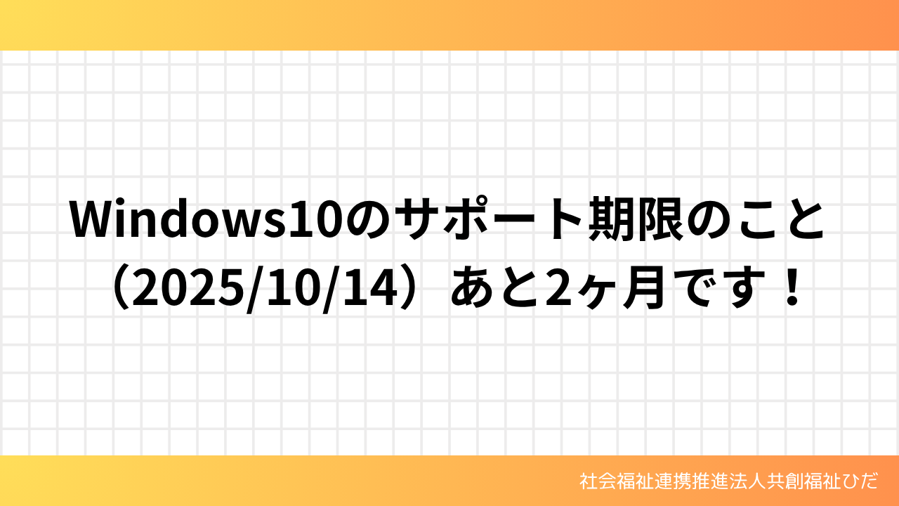 Windows10のサポート期限のこと(2025/10/14)あと2ヶ月です!