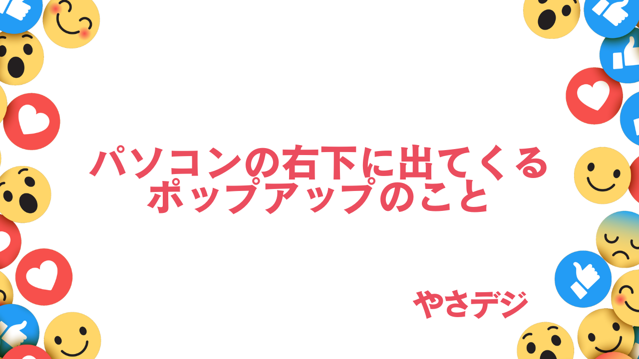 やさデジへ質問があったんですが、「パソコンの右下に出てくるポップアップ」のことについて、こちらはQ&Aではなくて、ブログで解説しますー。