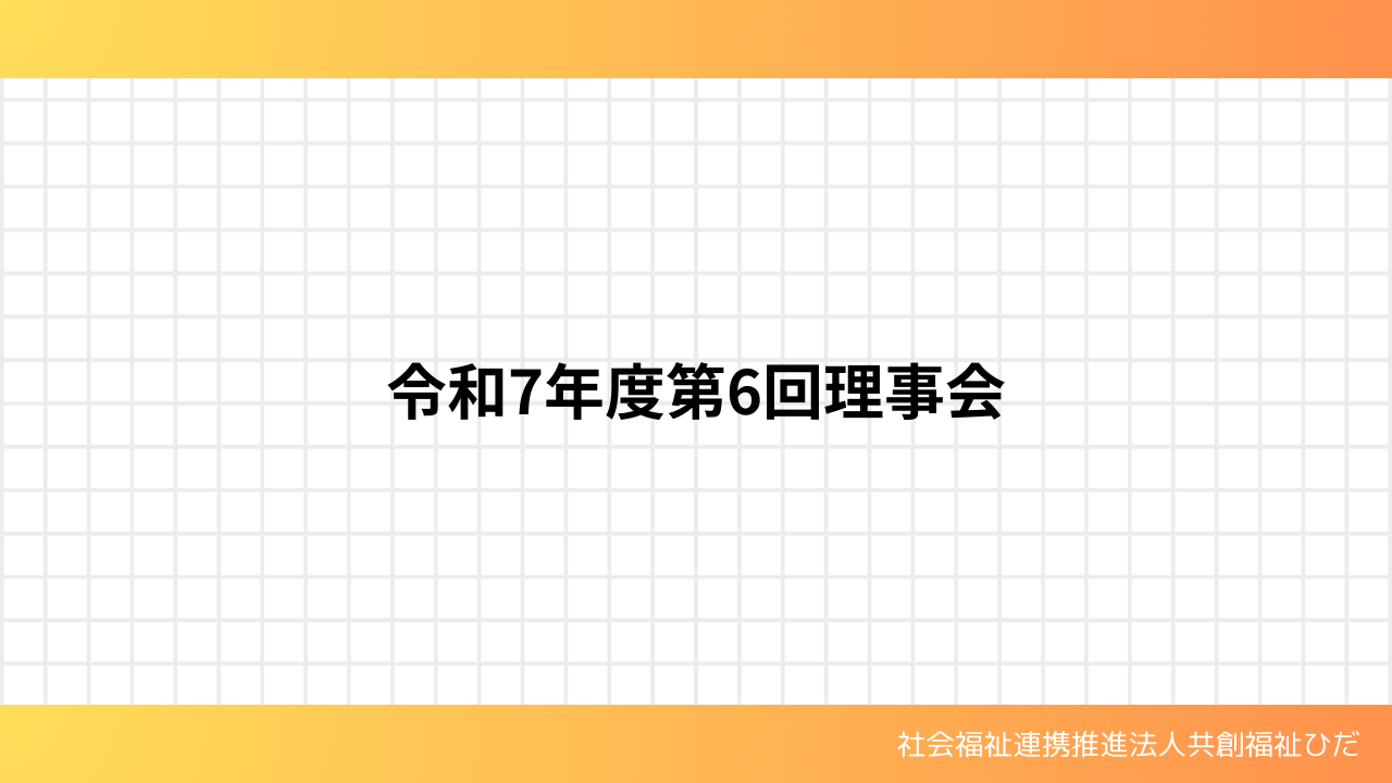令和8年3月18日(水)15:27~16:32にて、社会福祉連携推進法人共創福祉ひだ令和7年度第6回理事会を開催いたしました。